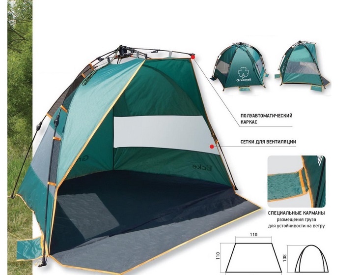 Полувтоматический тент-укрытие для пляжного отдыха.