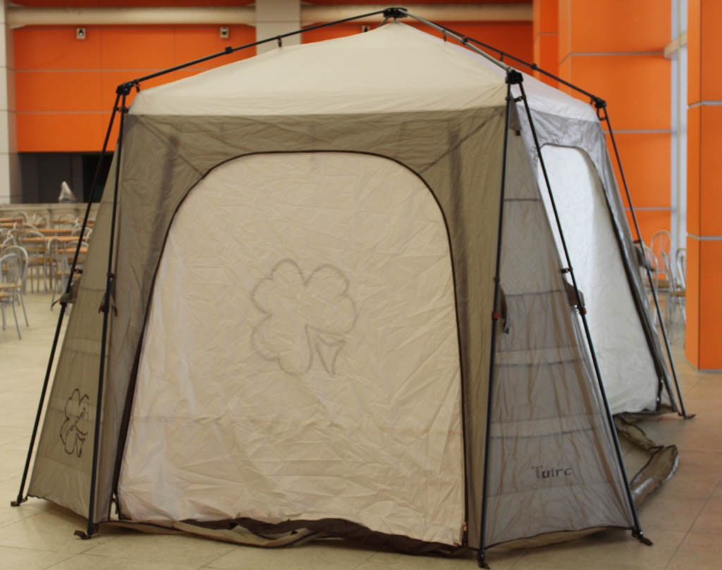 Самый большой тент-беседка с телескопическими дугами. Надежная и устойчивая конструкция. Четыре входа со всех сторон. Максимальная высота. Каждая стенка тента продублирована москитной сеткой. Четыре больших органайзера в углах тента для необходимых "мелочей".