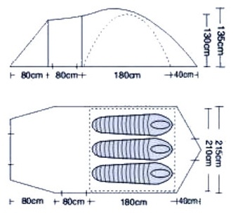 | Размеры внутренней палатки (ДхШхВ) | 180x210x130 см |