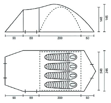 | Размеры внешней палатки (ДхШхВ) | 420x245x145 см |