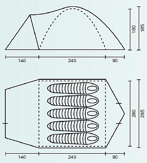 | Размеры внутренней палатки (ДхШхВ) | 240x280x180 см |