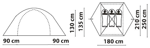 | Размеры внешней палатки (ДхШхВ) | 360x250x135 см |