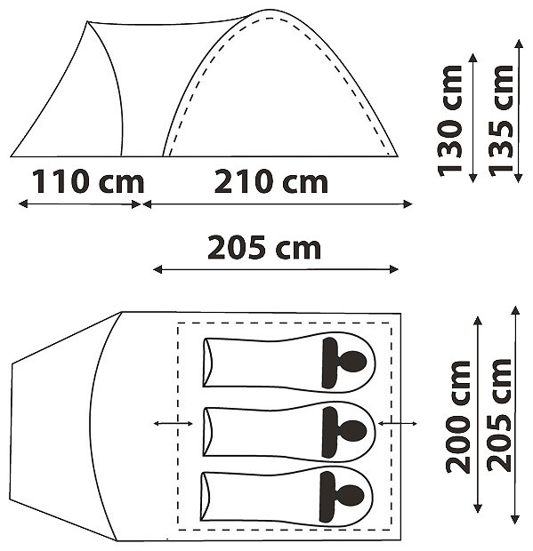 | Размеры внешней палатки (ДхШхВ) | 320x205x135 см |