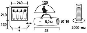 | Размеры внутренней палатки (ДхШхВ) | 210x240x130 см |