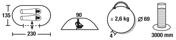 | Размеры внешней палатки (ДхШхВ) | 230x135x90 см |