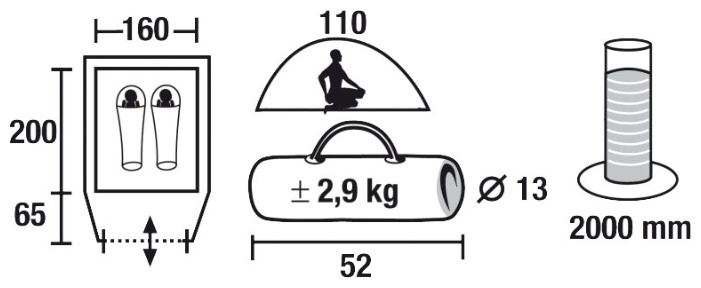 | Размеры внутренней палатки (ДхШхВ) | 200x160x110 см |