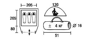 | Размеры внутренней палатки (ДхШхВ) | 205x205x120 см |