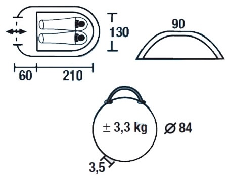 | Размеры внутренней палатки (ДхШхВ) | 210x130 см |