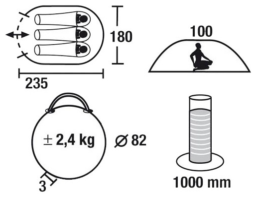 | Размеры внешней палатки (ДхШхВ) | 235x180x100 см |