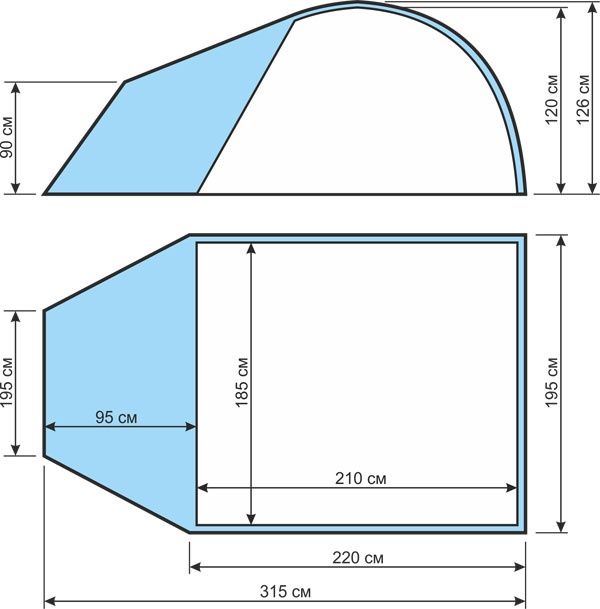 | Размеры внешней палатки (ДхШхВ) | |