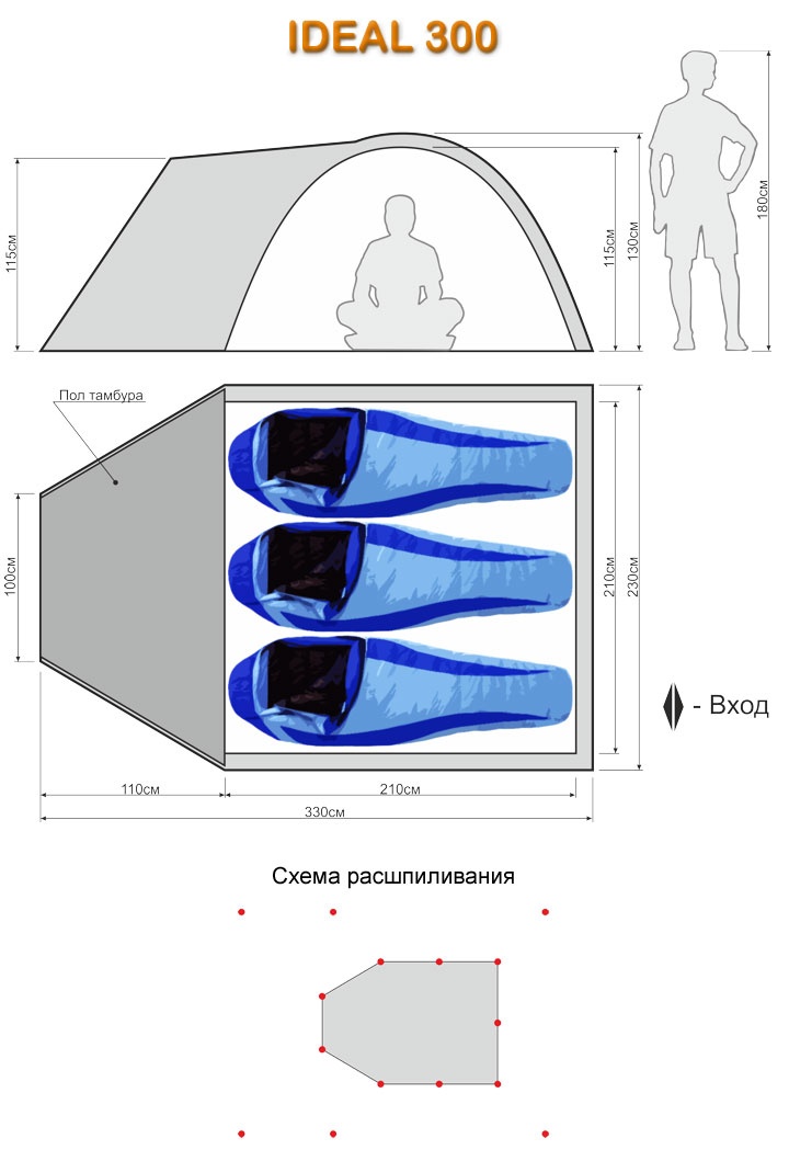 | Тента палатки 330(L) X 230/100(W) X 130/115(H) | |