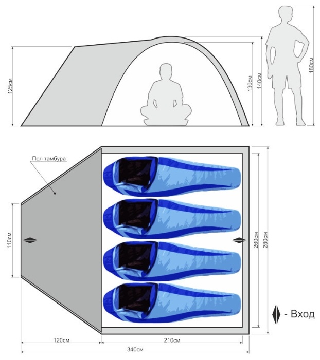 Внутренней палатки 210(L) X 260(W) X 130(H)