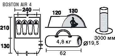 Четырехместная палатка Trek Planet "Boston Air 4" с отличной вентиляцией, большим тамбуром и двумя входами во внутреннюю палатку отлично подходит для длительного путешествия.