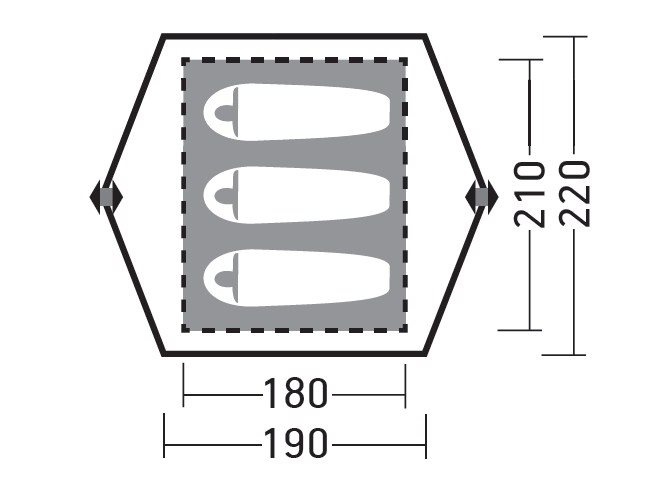 | Внешняя палатка (ДхШхВ) | 190x220x125 см |