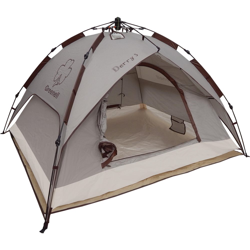 Палатка автомат Greenell Дерри 3 (95731-230-00) предназначенная для летнего отдыха на природе легко устанавливается и собирается, специальный механизм дает возможность собрать палатку одному человеку за считанные минуты.
