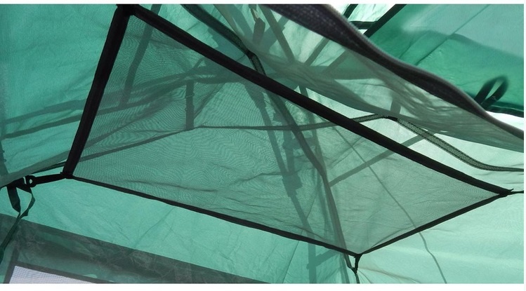 Максимальная вентиляция обеспечивается за счет внутренней палатки, выполненной полностью из москитной сетки, специального кроя тента и вентиляционных каналов в тенте палатки.