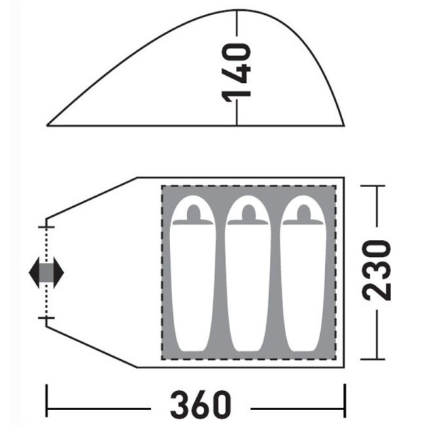 | Внешняя палатка (ДлхШирхВыс) | 230x360x140 см |