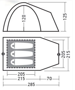 | Все размеры: | 285х215х125 см // спальное отделение 205х205х120 см |