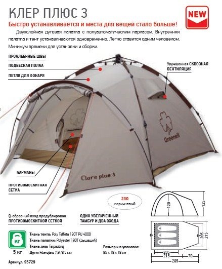 Извините, палатку Greenell Клер плюс 3 переместили в архив
