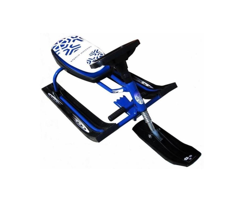 Амортизатор над передней лыжей смягчит удары на неровной дороге, ухабах и кочках. Для безопасного катания на склонах на снегокате предусмотрен рулевой ограничитель. Ножной тормоз поможет притормозить перед препятствием.