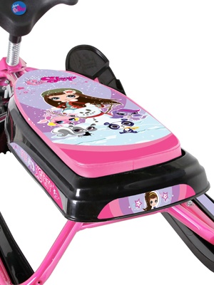 Лучшая конструкция крепления лыж, высокий руль, мягкое сиденье с симпатичной девочкой, приятный розовый дизайн. Есть амортизатор на передней лыже, стальные рамы, закругленные лыжи - возможность движения вперед и назад. Замечательный снегокат по самой лучшей цене!
