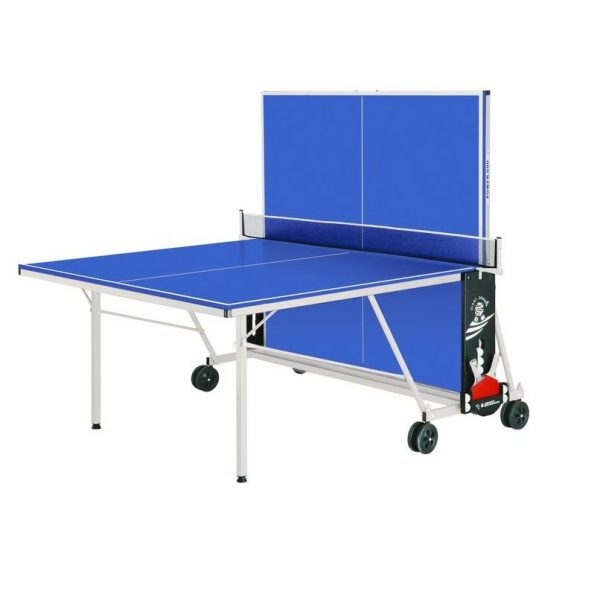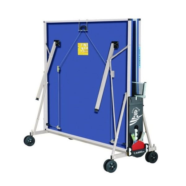 Стол оборудован четырьмя сдвоенными маневровыми колесами диаметром 125 мм, компенсаторами неровности пола на ножках, а также боксом для хранения двух ракеток и восьми мячиков.