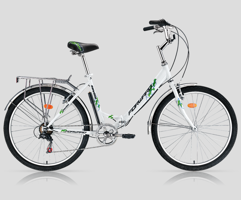 Forward Sevilla 3.0 - простой и надежный складной велосипед, комфортное седло с пружинами. Колеса диаметром 26 дюймов, жесткая вилка. Идеально подойдет для передвижения по асфальту, грунтовым дорогам и совсем легкому бездорожью. Система переключений Shimano начального уровня, 6 скоростная трансмиссия! Усиленный багажник!