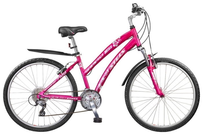 Этот велосипед создан специально для девушек, предпочитающих кататься с комфортом. Удобное мягкое сиденье и ручки, стильный дизайн, радующий взгляд и специальная заниженная рама. Такая рама позволяет садиться на велосипед не задирая высоко ногу. А значит можно кататься в юбочках и платьицах. Рама из алюминия значительно облегчает вес велосипеда и при этом обладает повышенной прочностью, так как не подвержена влиянию агрессивных сред. Она имеет трубы большого диаметра и специальную геометрию, что также влияет на ее долговечность. Пружинно-эластомерная вилка позволяет справиться с управлением в любых, даже самых экстремальных условиях и, кроме того, оберегает руки от ударов при езде по неровностям. Задний переключатель Shimano Altus отличается быстротой и надежностью. При этом доступен для любого кошелька. Отличный велосипед Stels Miss 7100 для спортивных девушек, стремящихся поддерживать свой организм в тонусе.