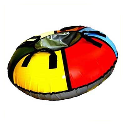 Надувные санки-ватрушка. Можно кататься и взрослым и детям. Летом можно использовать на воде. В основе ватрушки лежит автомобильная камера. Камера вставлена в прочный тканевый чехол со специальной пропиткой для улучшения скольжения и устойчивости к истиранию. Все швы ватрушки для прочности закрыты и усиленны капроновой лентой. Четыре мягкие ручки, за которые можно держаться при спуске с горы, длинный буксировочный ремешок, ватрушку можно закрепить за снегоходом. Накачивается любым автомобильным компрессором.