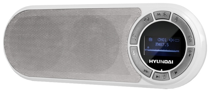 Hyundai H-PS1201 - компактное устройство выполненное в оригинальном дизайнерском стиле. Система способна воспроизводить MP3, WMA и WAV-файлы с micro SD-карт, USB-накопителей или других устройств, соединенных с ней при помощи AUX.