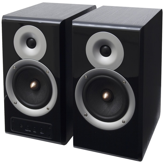 Также на задней стенке активной колонки расположились кнопка включения/выключения системы, 2 RCA-аудиовхода и аудиовыход в виде винтового зажима. На передней панели находятся органы управления системой, которые представляют из себя кнопки регулировки громкости, нижних и верхних частот. Слева от них находится информирующий светодиод. При нажатии на кнопку Function переключается режим управления громкостью, нижними или верхними частотами. Кнопки Vol+ и Vol- служат для увеличения или уменьшения уровня нижних и верхних частот, а также громкости. При изменении необходимого из трех уровней светодиод принимает также три различных состояния: горит зеленым, оранжевым и красным цветами.