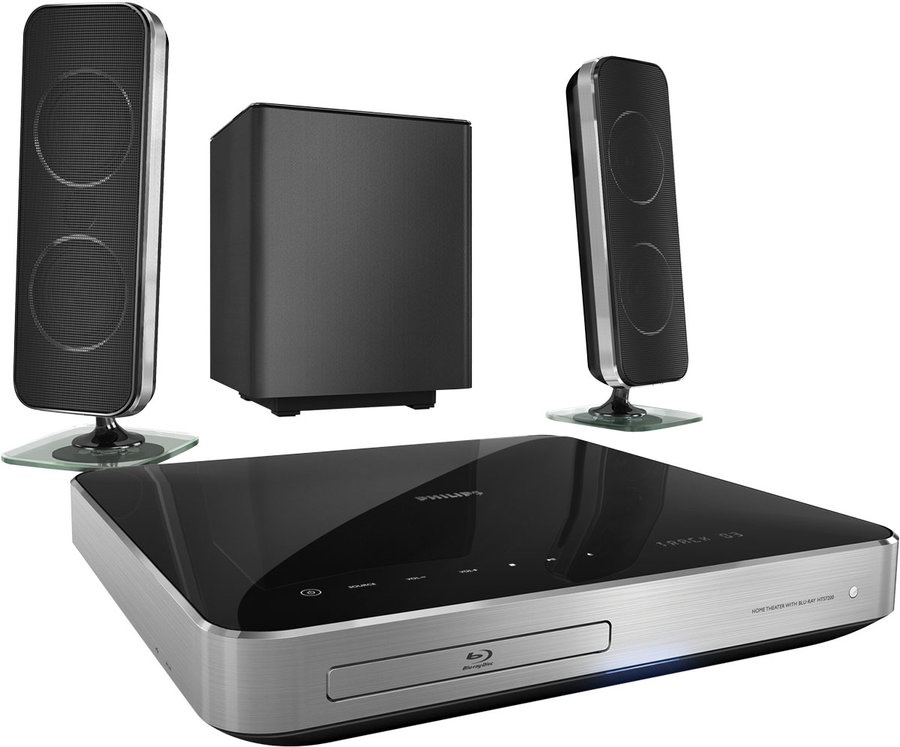 Домашний кинотеатр Philips HTS 7200/51 с воспроизведением дисков Blu-ray. Выполнен в алюминиевом стеклянном корпусе. Мягкие куполообразные динамики ВЧ. Технологии FullSound и DoubleBASS.