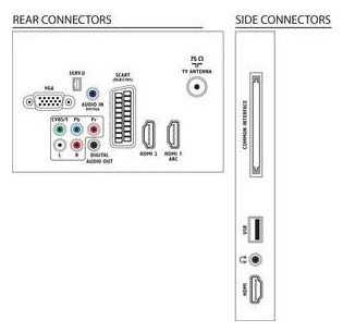 | Входы AV, аудио x2, компонентный, SCART, RGB, VGA, HDMI x3, USB | |