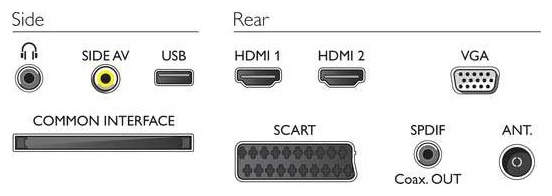 | Входы AV, SCART, RGB, VGA, HDMI x2, USB | |