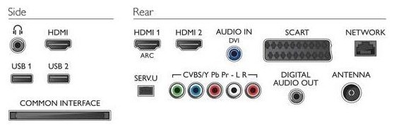 | Входы AV, аудио x2, компонентный, SCART, RGB, HDMI x3, USB x2, Ethernet (RJ-45), Wi-Fi, Miracast | |