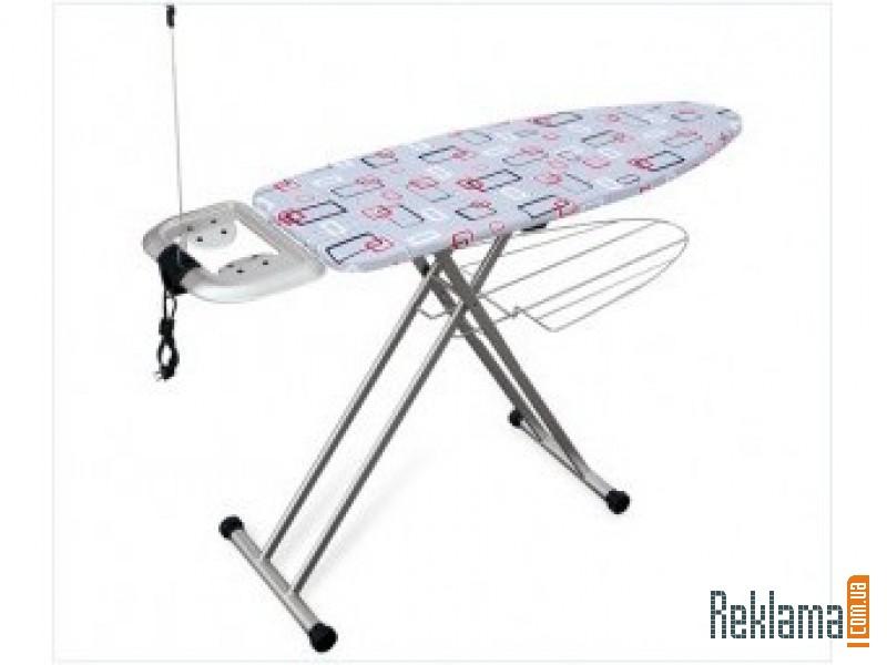 Доска гладильная снабжена подставкой под утюг, удлинителем для эл. сети и антенной. Стол выполнен из металлической сетки для свободного прохождения пара. Эмалированные ножки. Чехол из 100% хлопка. Размер стола 120х44 см