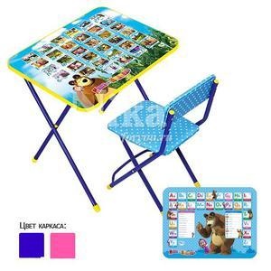 Складной комплект детской мебели. Предназначен для детей в от 3 до 7 лет. Металлический каркас. В комплект входит стол и стул с мягким сиденьем. Столешница облицована пленками, с различными тематическими рисунками.