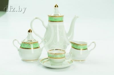Кофейник 825 см3 ф.245 Романс (1 шт.); Сахарница кофейная 250 см3 ф.302 Романс (1 шт.); Сливочник кофейный 200 см3 ф.245 Романс (1 шт.); Чашка кофейная 110 см3 ф.245 Романс (6 шт.); Блюдце кофейное 120 мм ф.245 Романс (6 шт.);