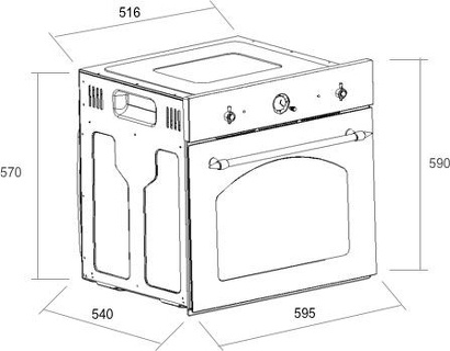 Встраиваемый духовой шкаф Lore EO 5M-2G RTR с объемной духовкой 57 л, управляется поворотными переключателями, которые обеспечивают высокую точность установки температуры и безопасность пользователя.