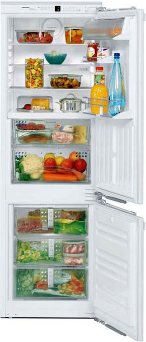 Liebherr ICBN 3056 — встраиваемый холодильник премиум-класса, оснащенный всем необходимым для длительного и бережного хранения продуктов. Помимо холодильного и морозильного отделений, модель имеет зону свежести «BioFresh», в контейнерах которой поддерживаются оптимальные условия для свежих овощей, фруктов, мяса и рыбы. Благодаря температуре близкой 0˚C и повышенному уровню влажности внутри зоны «BioFresh» свежие продукты сохраняют вкус и питательную ценность в 3 раза дольше, чем в обычном холодильном отделении.