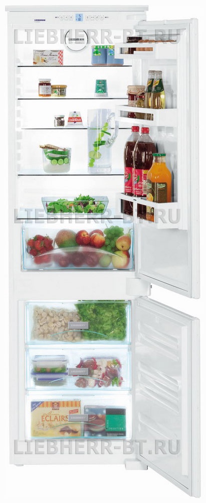 Встраиваемый двухкамерный холодильник класса Comfort с нижним расположением морозильной камеры.