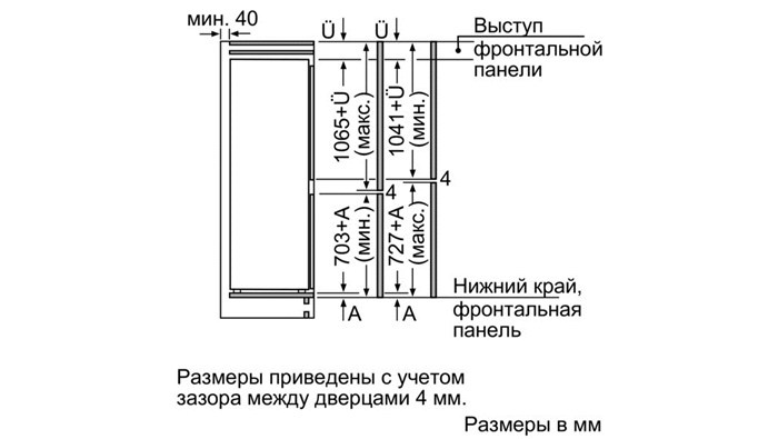 | Акустический сигнал тревоги для холодильного и морозильного отделения | |