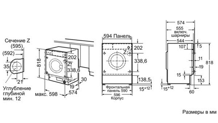 Размеры (В х Ш х Г): 81.8 x 60 x 57 см, с учетом выступающих элементов
