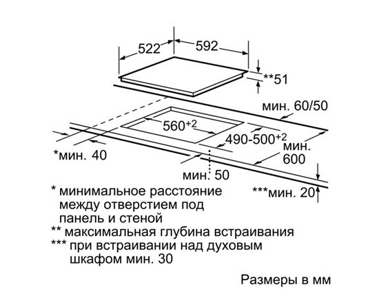 | Размеры для встраивания (ШхГ) | 56 x 49 см |