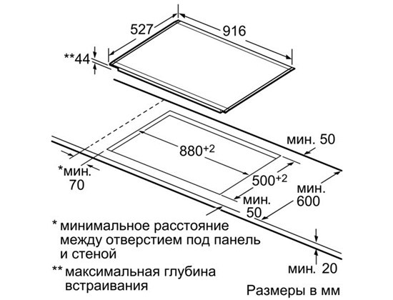 | Размеры для встраивания (ШхГ) | 88 x 50 см |