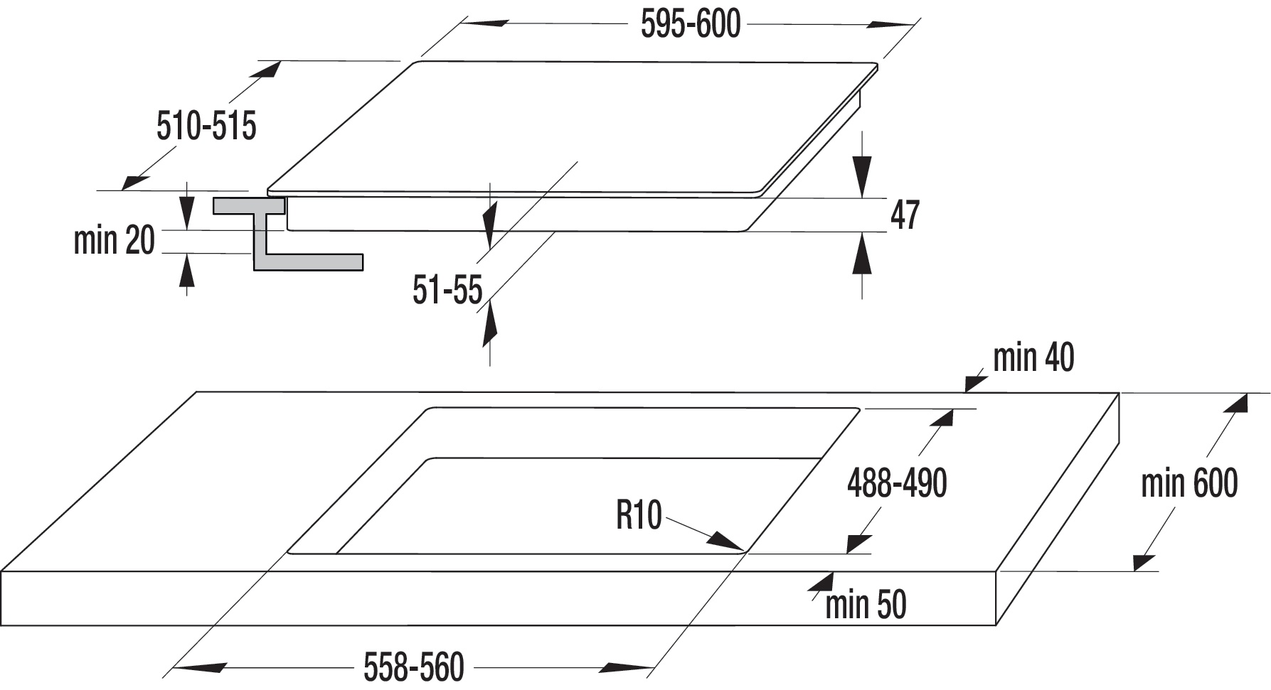 | Монтажные размеры (шхвхг) | 55.8-56 × 6.7 × 49 см |