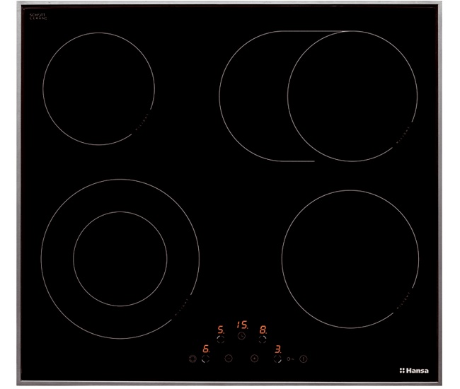 Варочная поверхность электрическая стеклокерамическая поверхность керамические конфорки переключатели поворотные независимая установка габариты (ШхГ) 60x51 см Hansa.