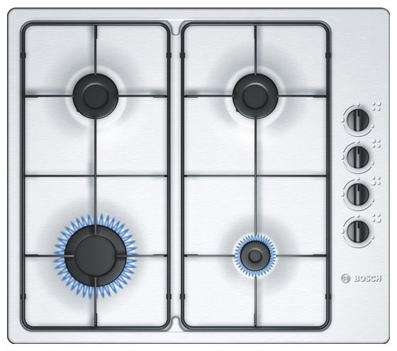 Газовые варочные панели от Bosch снабжены очень практичным устройством автоматического электроподжига и датчиками защиты от утечки газа. Компания Bosch позаботилась о Вашей безопасности. Защитное устройство автоматически прекращает подачу газа, если пламя горелки погасло.