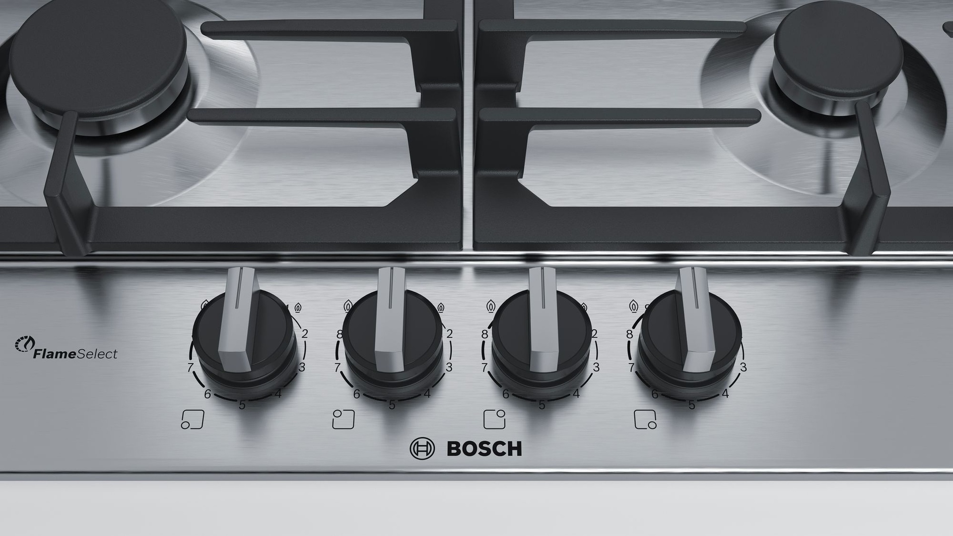 Газовая варочная поверхность с функцией FlameSelect: достижение совершенных результатов благодаря 9 уровням регулировки пламени.