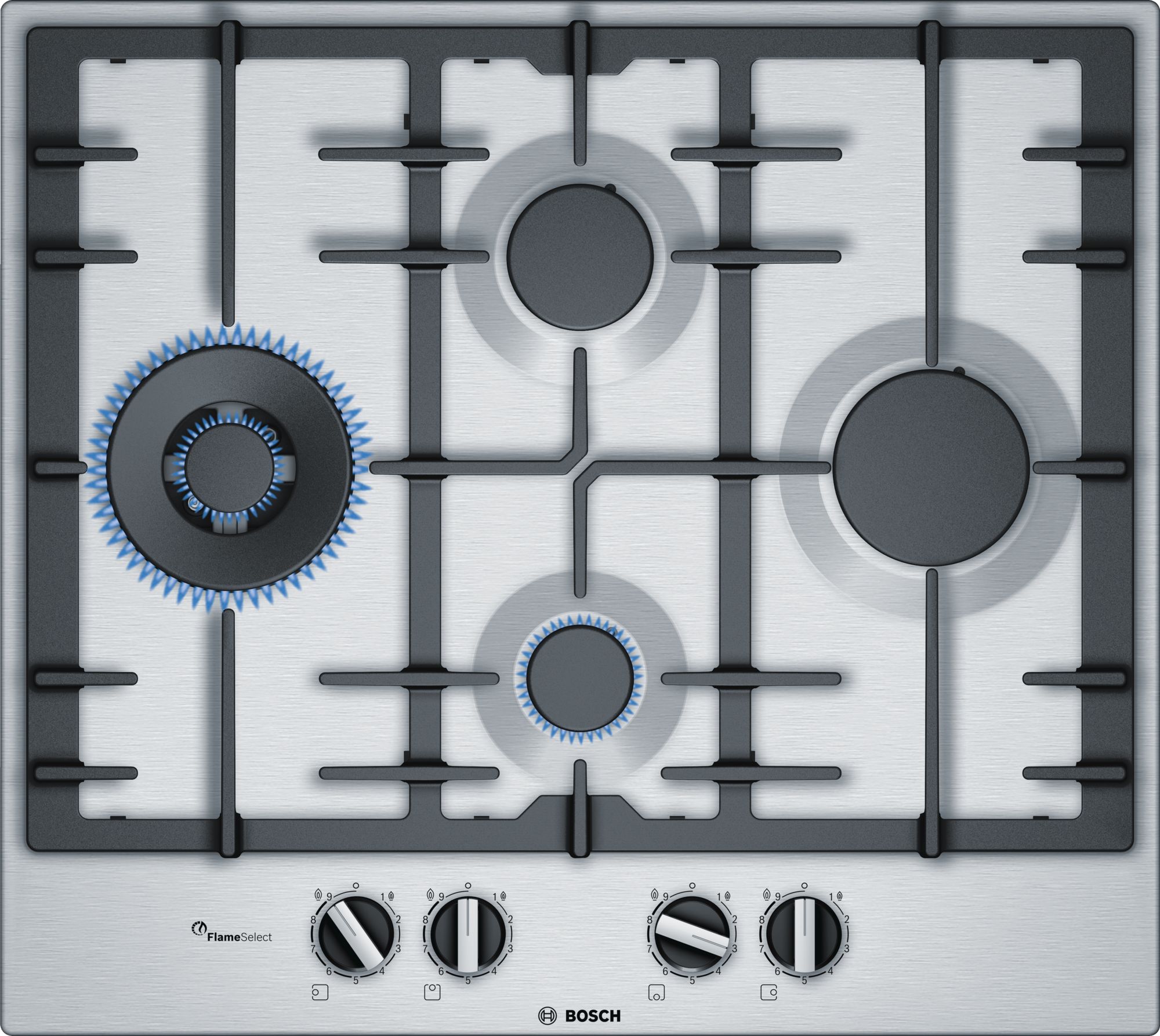 Газовая варочная поверхность с функцией FlameSelect: достижение совершенных результатов благодаря 9 уровням регулировки пламени.